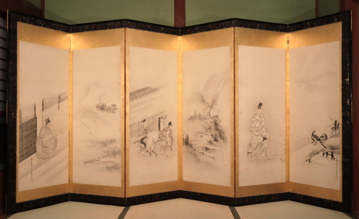 屏風をたたんだ時の大きさが、約62.5x173x10.5cm、6曲片双、紙本です。