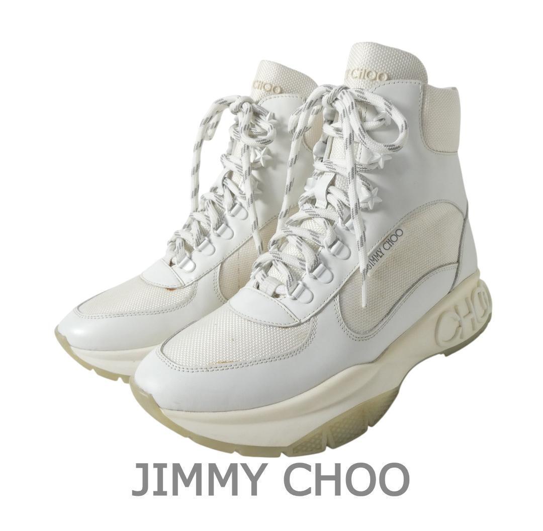 - JIMMY CHOO ジミーチュウ INCA/M 40 約25㎝ レザー 星 ロゴ レースアップ チャンキーハイカット スニーカー オフホワイト