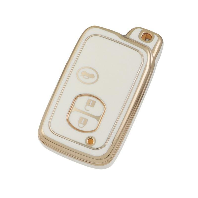 > トヨタ スマートキーケース TPU キーカバー プリウス アクア カローラ 3ボタン ホワイト×ゴールド