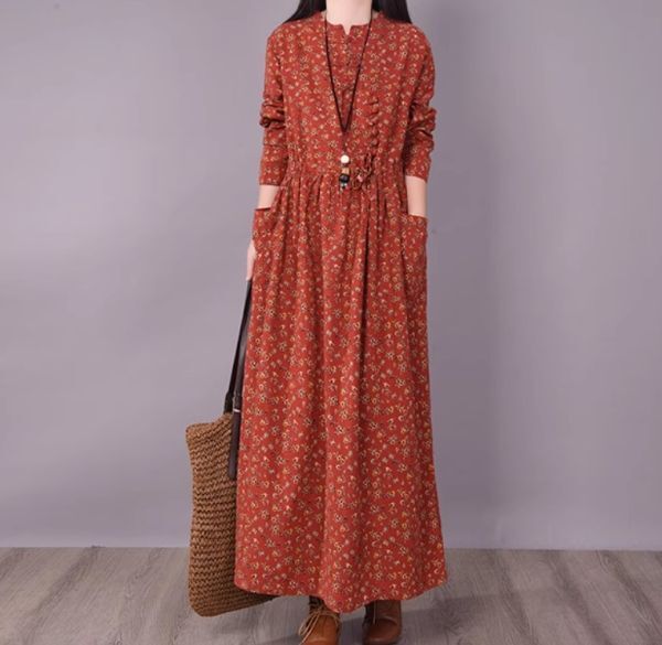 - レディース ワンピース ロング ハイウエスト 花柄プリント EY26