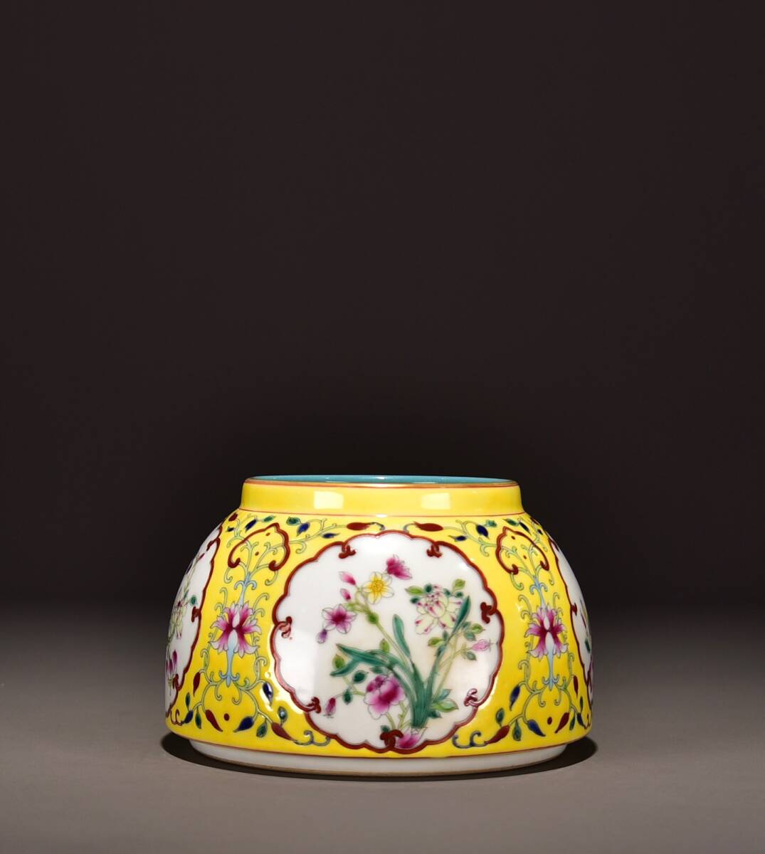 - 【超珍館蔵】清 雍正年製款 古陶瓷品 黄地 粉彩 花卉紋 馬蹄洗 置物 古賞物 古美術品 稀少珍蔵品