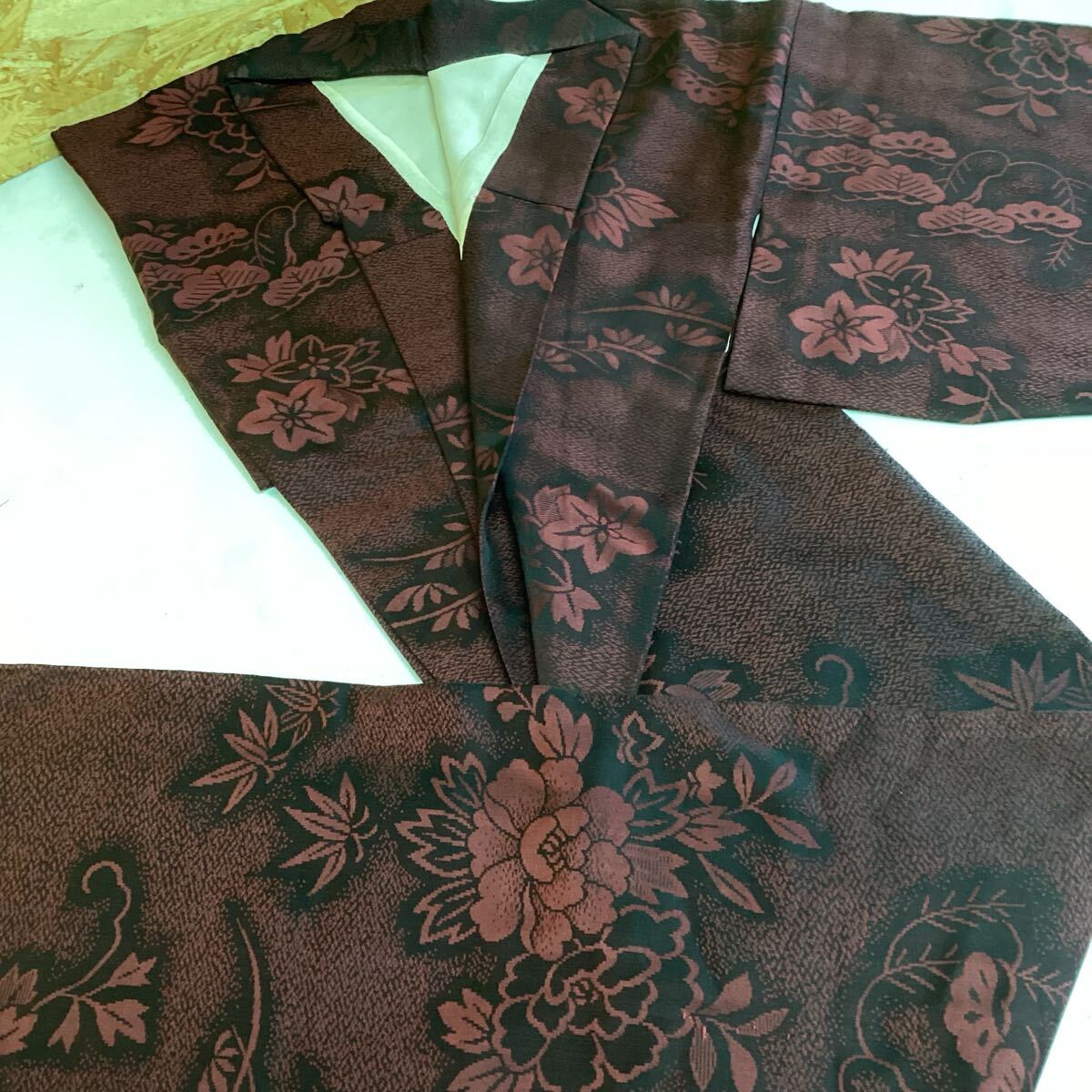 - 和装 着物 茶系 花柄 モダン シンプル カジュアル 綺麗な和柄 (ぬ45)