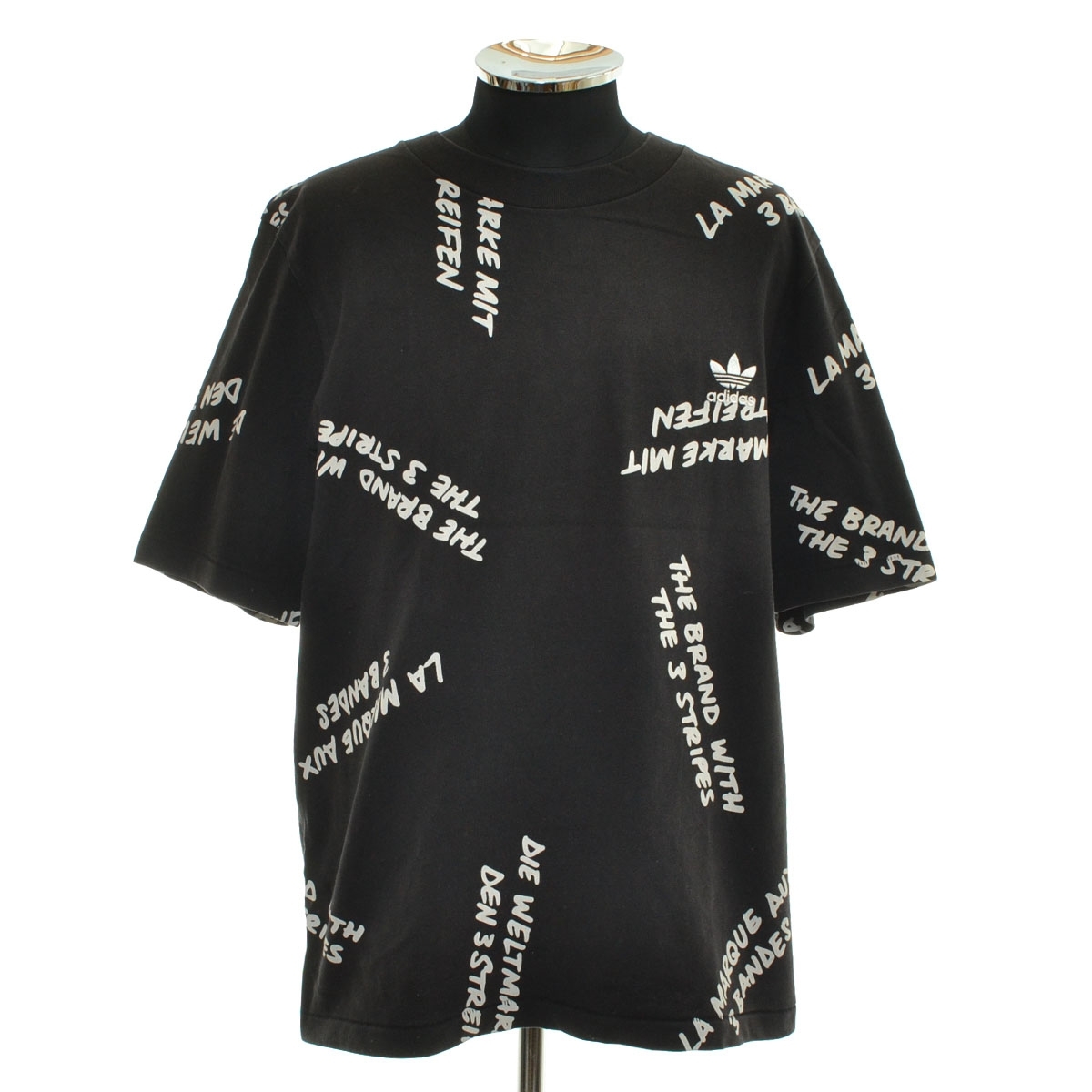 - 〇491522 adidas アディダス ○ロゴプリントTシャツ 半袖 トップス BJ9929 サイズM メンズ ブラック