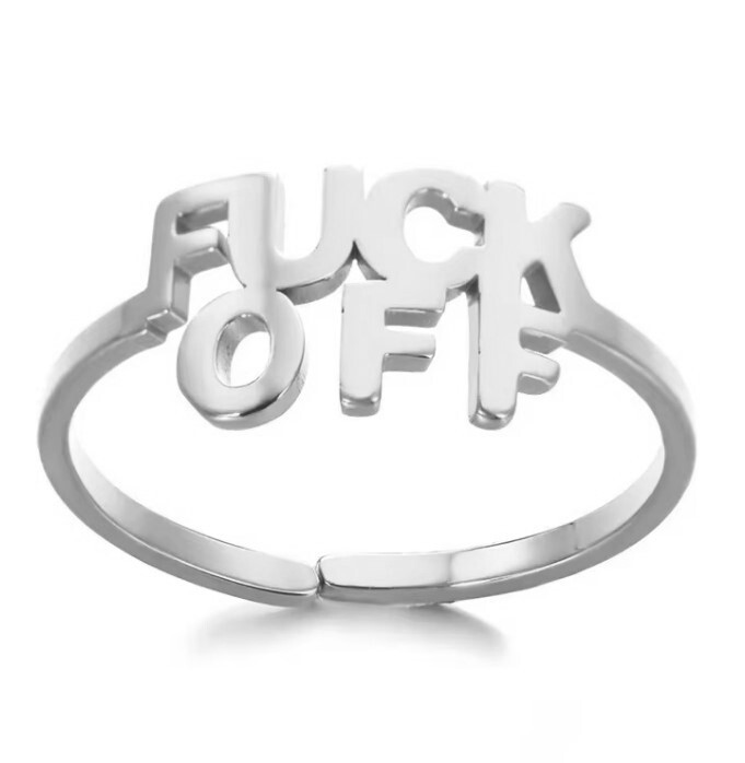 > FUCK OFF Ring Free Size Open Ring Silver Titanium ファック オフ リング オープンリング フリーサイズ 銀色 チタン合金 7号~