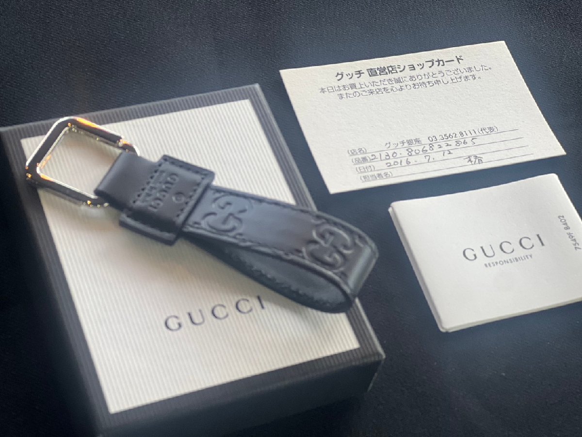 > ★ 本物 正規店購入 未使用 GUCCI グッチ シマ レザー キーリング キーホルダー 199919.479292 箱 ギャランティ付き