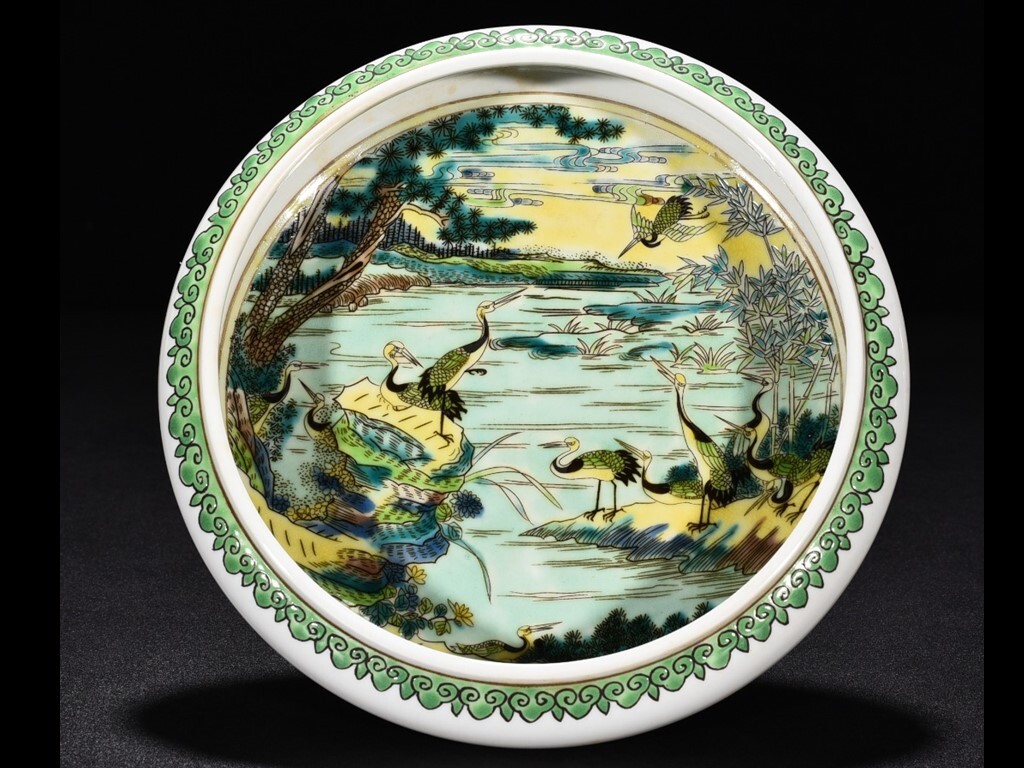 - TA237■中国古玩 唐物 大清道光五彩鶴紋洗 時代物 極上品■
