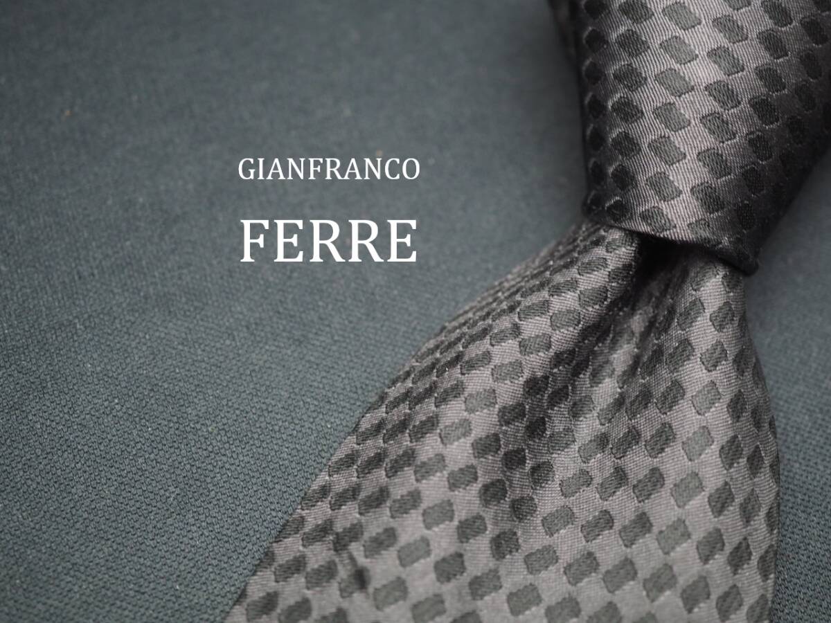 - 美品【GIANFRANCO FERRE ジャンフランコフェレ】 E1321 グレー ブラック SILK ブランド ネクタイ 古着 良品