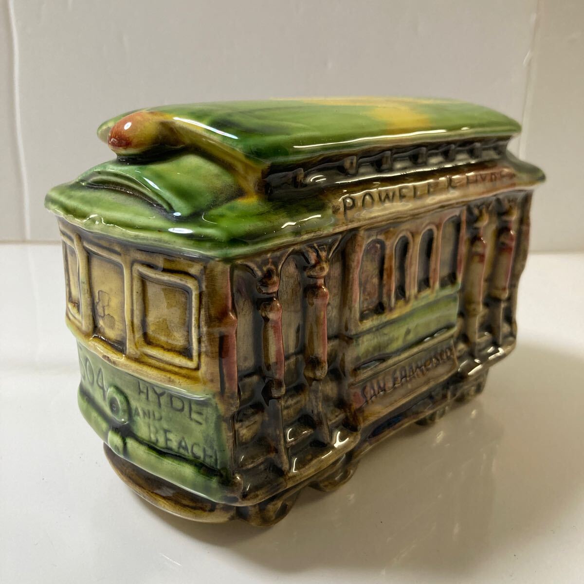 - 2505t424 ヴィンテージ 陶器製 サンフランシスコ ケーブルカー 貯金箱