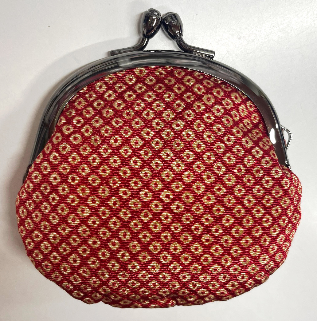 - 日本製 がま口小銭入れ 2.5丸 縮緬古裂 ちりめん 鹿子柄 赤