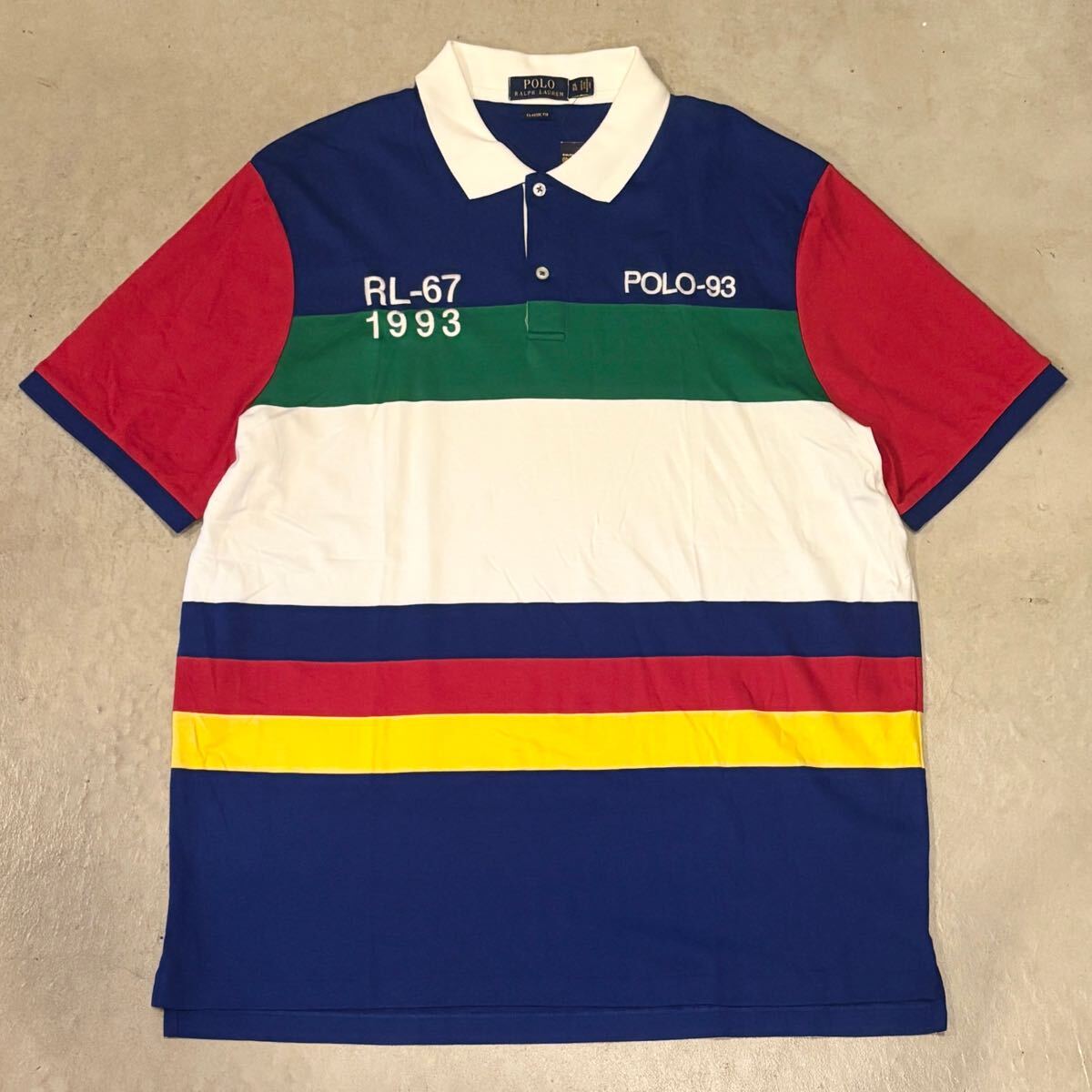> 【新品未使用】RL-93 POLO RALPH LAUREN ポロラルフローレン 半袖ポロシャツ メンズ XL マルチカラー ロゴ 刺繍 復刻 classic fit 正規品
