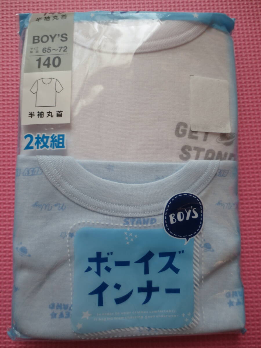 - 新品 140 半袖丸首シャツ 2枚組 白 水色 宇宙 星 惑星柄 肌着 下着 小学生 男の子 ボーイズインナー 2枚セット 春物 秋物 130cm~ 送料無料
