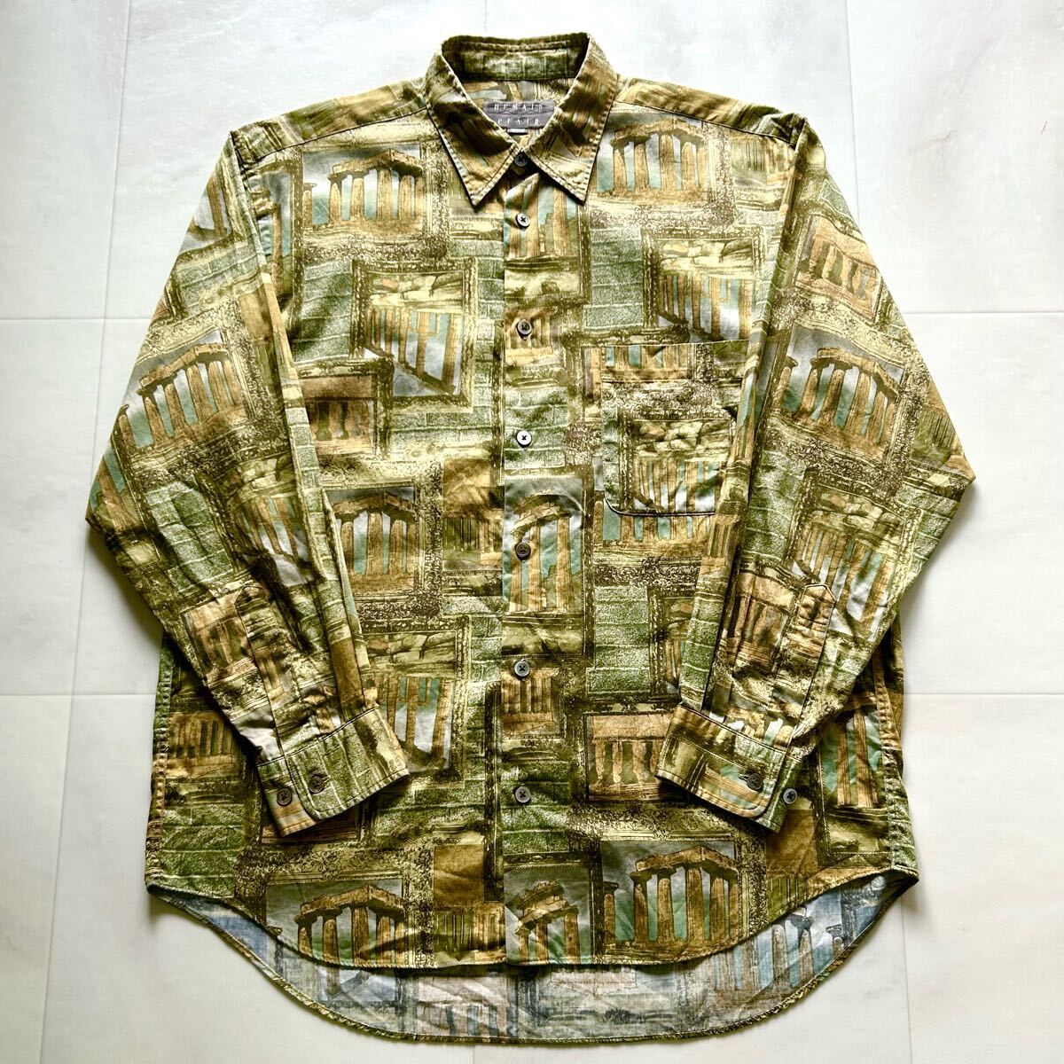 - DEMAIN CLAIR 総柄 柄シャツ 神殿 風景 レトロ アート ビンテージ 長袖シャツ 綿100%