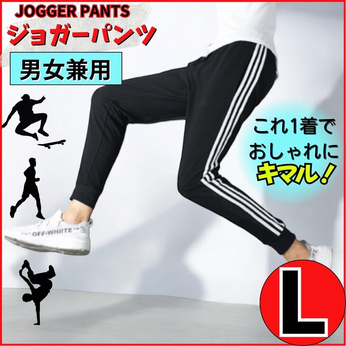 - ジョガーパンツ L ジャージ ボトムス メンズ レディース 男女兼用 サイドラインパンツ 韓国 カジュアル ズボン ストレッチ 黒