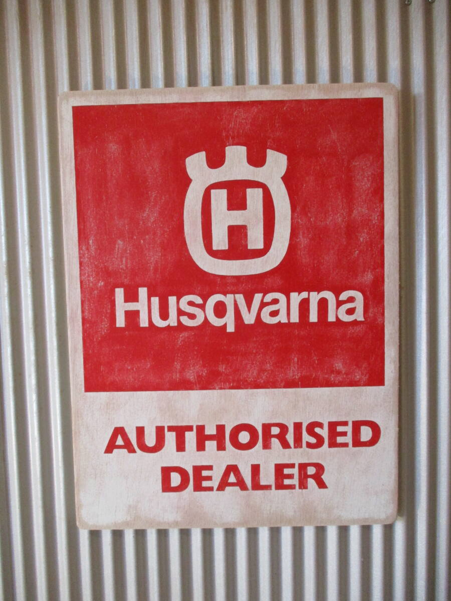 - インテリア木製看板 HUSQVARNA検)ハスクバーナーアドバタイジング企業販促ガレージカスタムKTMモトクロスバイク60s70s