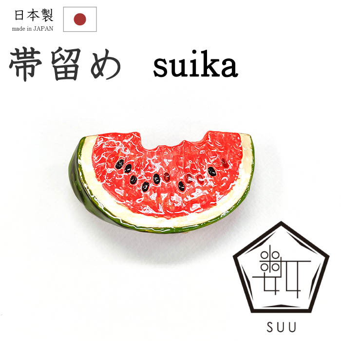 - 着物だいやす 533■帯留め■SUU 数ブランド スイカ 西瓜 スズ合金 箱付き プレゼントにも 夏小物【送料無料】【新品】