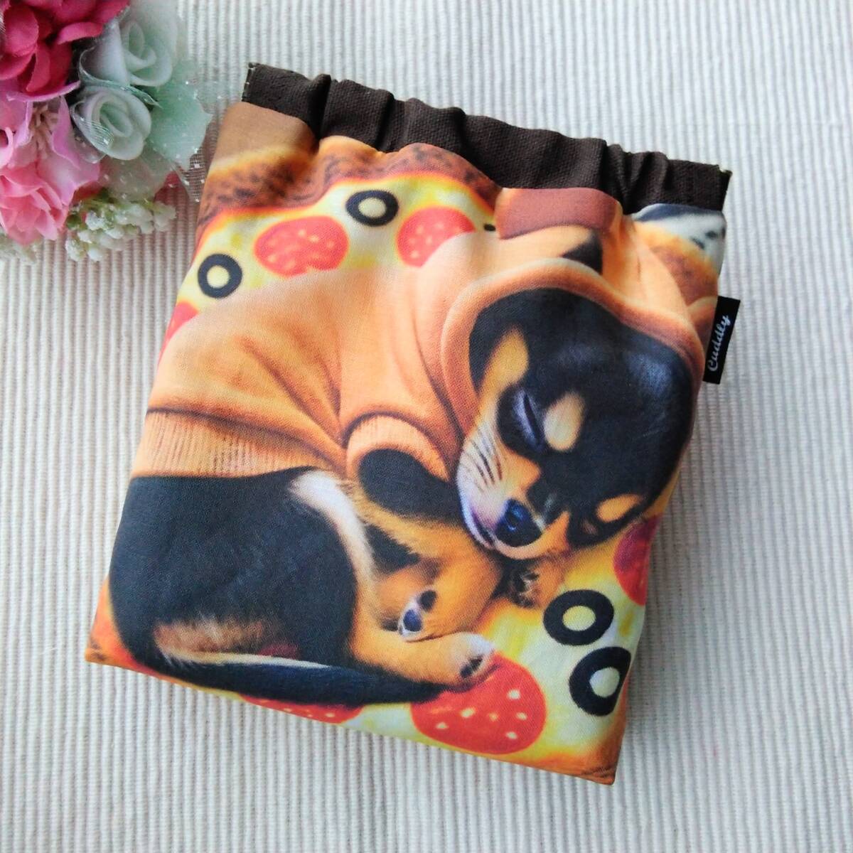 - ハンドメイド バネポーチ ピザマット チワワ パネル生地