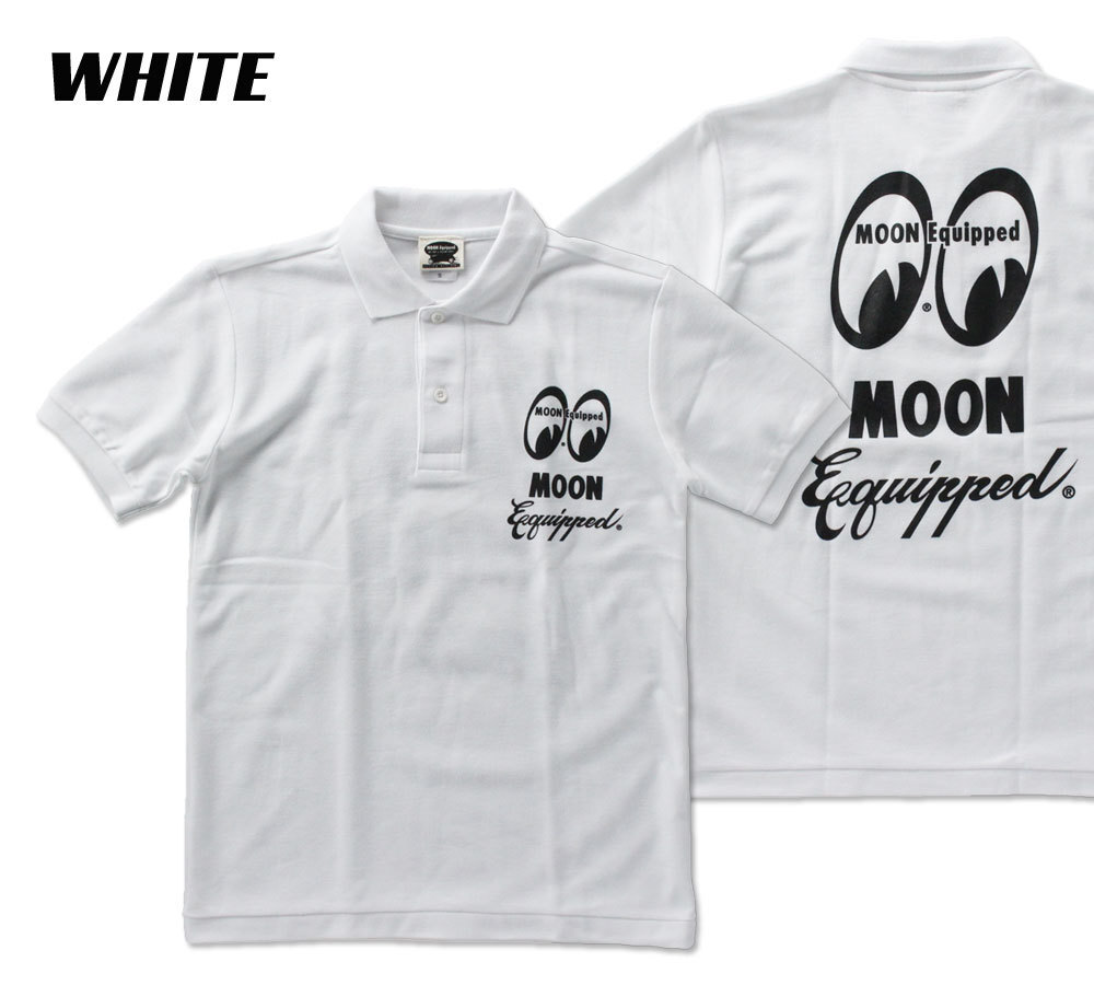 - ムーンアイズ ポロシャツ メンズ 半袖 アメカジ おしゃれ かっこいい ホットロッド MOONEYES MOON Equipped ポロシャツ ホワイト サイズLL