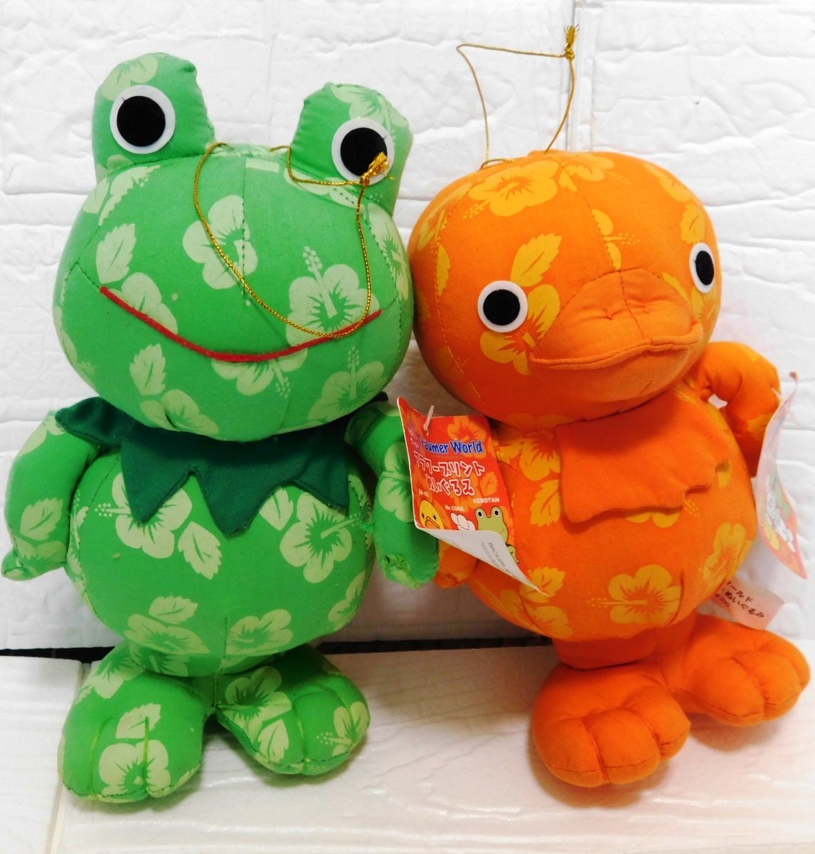 - ■ トロイマーワールド ケロタン ガーコ フラワープリントぬいぐるみ 2体セット 紙タグ付き