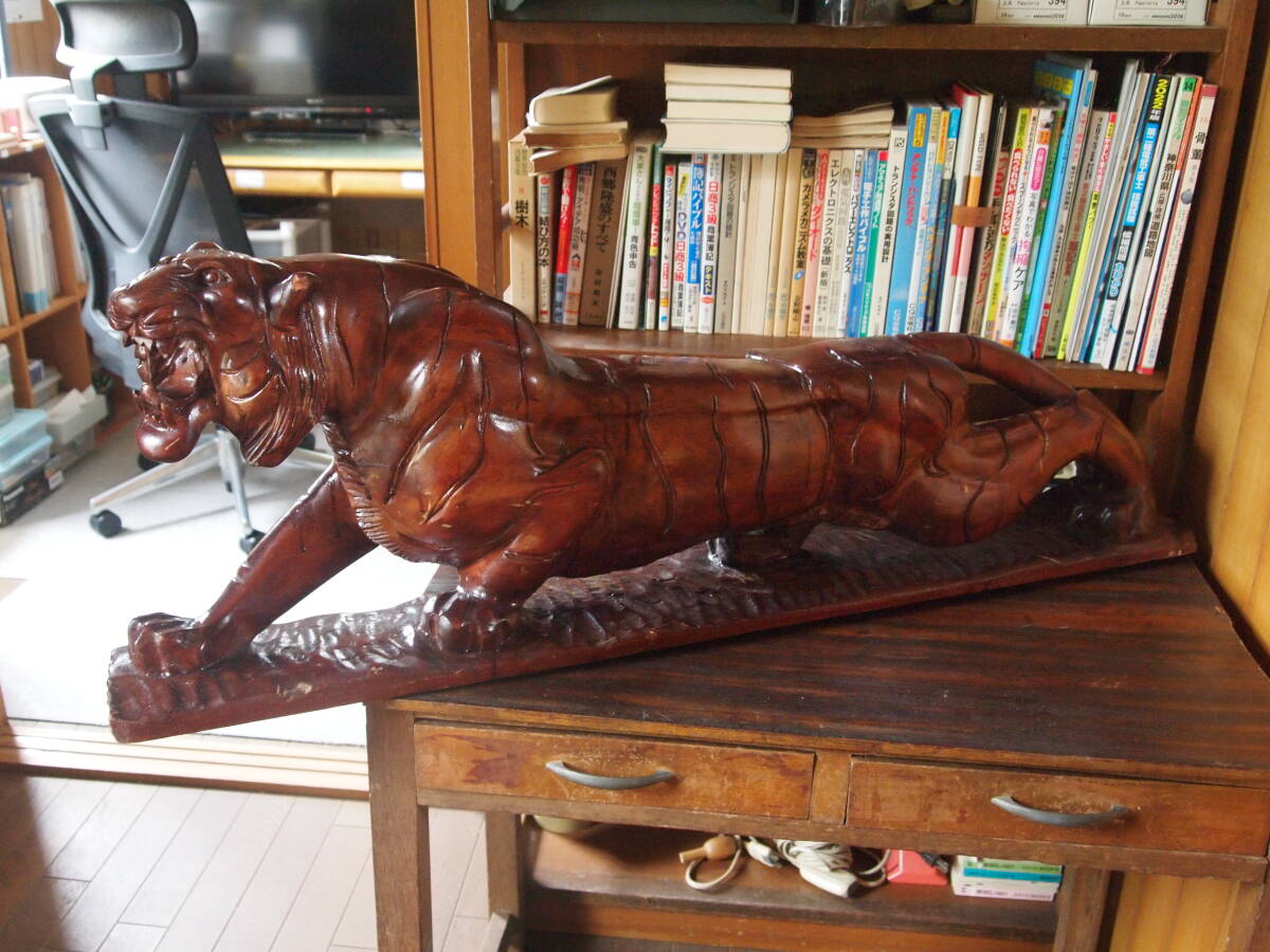 - 虎★注目・木製『虎の手造り置物像・中古並品』傷あり・激安!