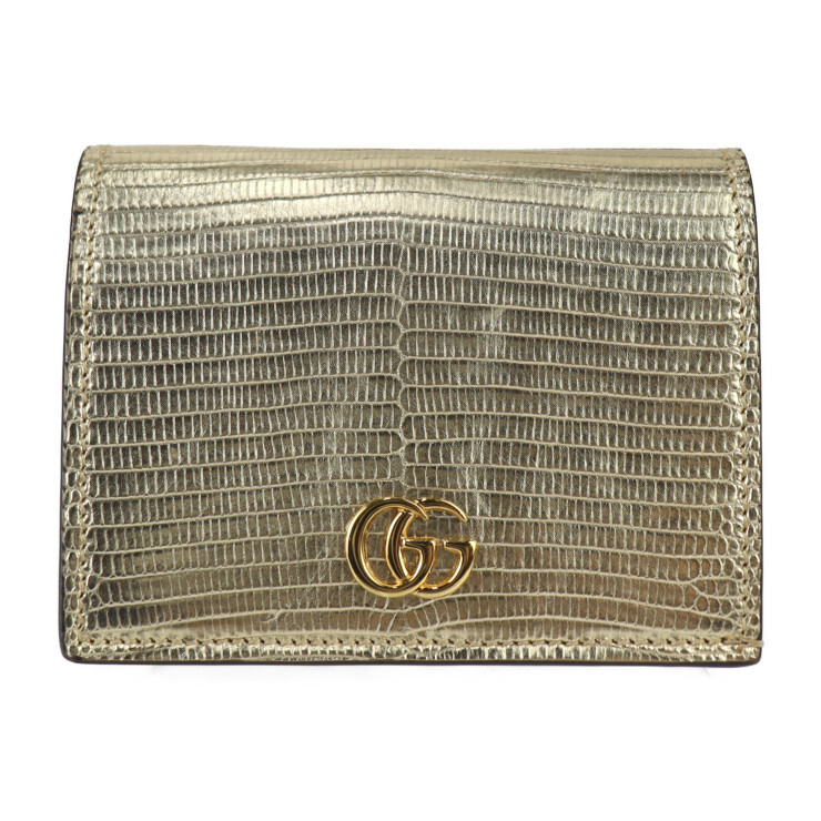 - 美品 GUCCI グッチ コンパクトウォレット GGマーモント 456126 EYZAG 二つ折り財布 リザード レ【本物保証】