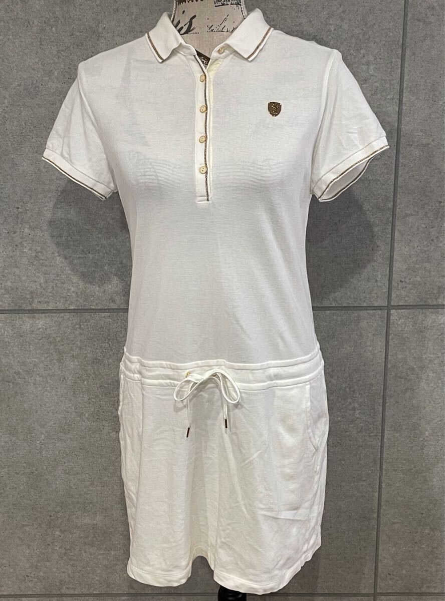 > 夏本番! 23区SPORT ニジュウサンクスポーツ ゴルフ 半袖 ワンピース ロゴ金具 白 M~Lサイズ レディース ゴルフウェア ○ 新規×