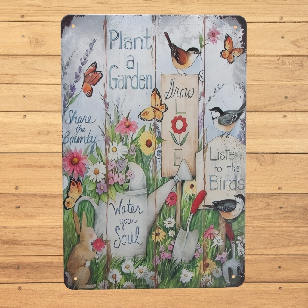 - ブリキ看板 小鳥と蝶々と兎 20㎝×30㎝ 新品