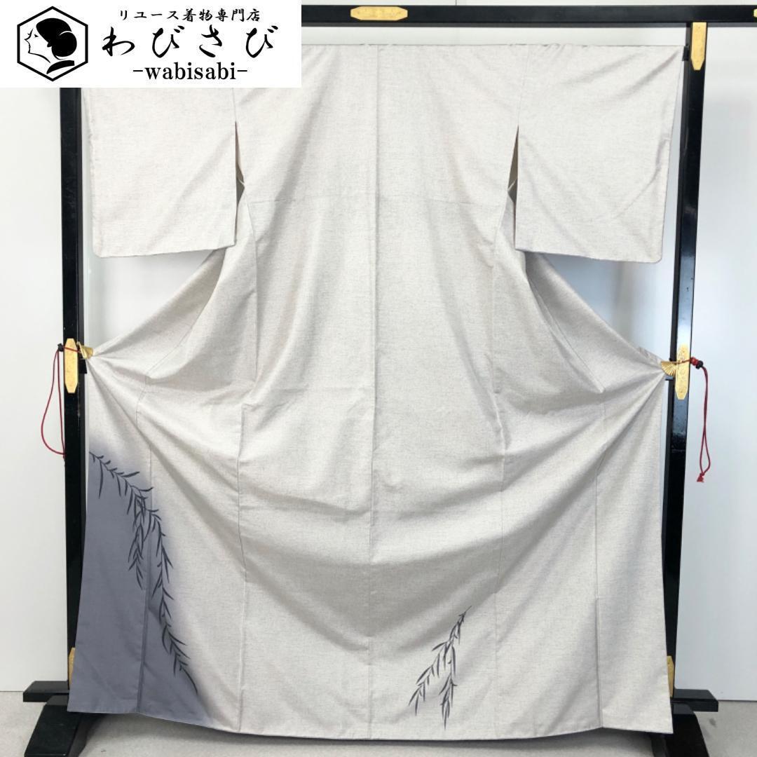 胡粉色の上品なお色味に暈し、さり気ない葉模様の柄裄がデザインされた素敵な染大島のお品でございます。
