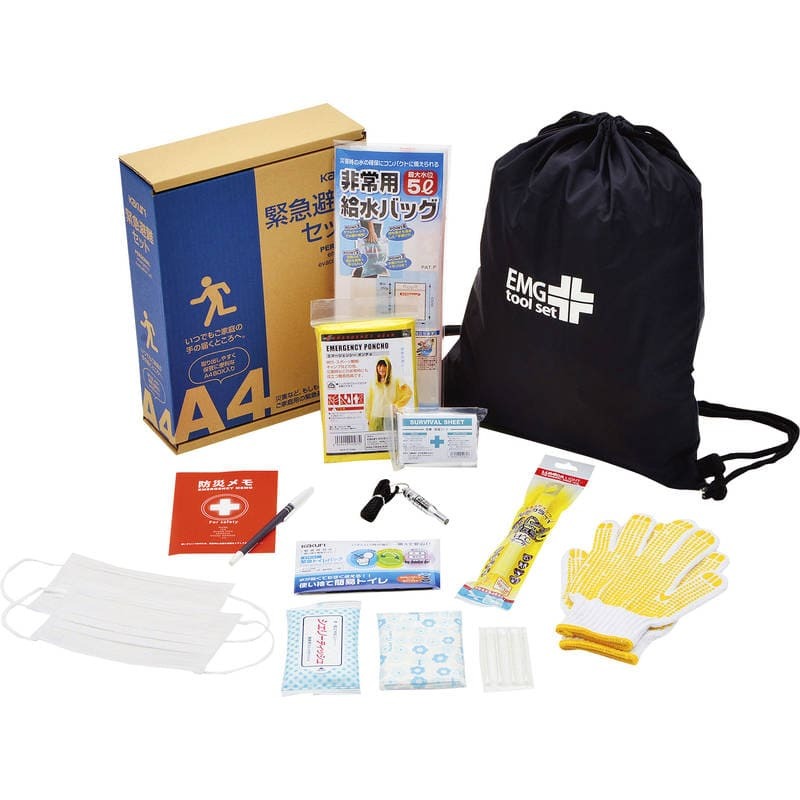 ▼▼▼▼▼▼注意事項▼▼▼▼▼▼・送料込み(送料800円が商品価格に含まれています) 一部地域では追加送料あり。・お取り寄せ商品です。弊社にて手配後、メーカー・卸業者からの直送になります。・まれにメーカー欠品、出荷遅延等が発生致します。問題発生時は別途メールにてご連絡致します。・配送方法の指定、日時指定、置き配、ギフト対応、他商品との同梱配送などは対応できません。・まとめ買いや複数購入の場合は通常より発送に時間が掛かる場合がございます・複数個口の場合、2階以上への搬入ができない場合があります。(その場合は1階での受け渡しとなります)・大型連休、お盆、年末年始などは発送をお休みさせていただく場合がございます・メーカー都合により、パッケージは予告なく変更される場合がございます・梱包用のダンボールはリサイクル品を使用させていただきます。・注文に関するご連絡(注文確定通知・発送通知など)はメールでご案内させていただきます※商品ページの内容について、少しでもご不明な点などがございましたら購入前に一度ご連絡ください▲▲▲▲▲▲注意事項▲▲▲▲▲▲〇商品説明いつでも持ち出せる場所で保管できるA4ファイルサイズのBOX入〇商品仕様【パッケージサイズ】310×85×240mm【内容】非常用持ち出し袋350×450mm、ルミカライト、IDホイッスル、サバイバルシート、ポンチョ、すべり止め軍手、非常用給水バッグ5L、緊急トイレパック、使い捨てマスク、綿棒4本、ポケットティッシュ、ウェットティッシュ、防災メモ、ボールペン【材質】非常用持ち出し袋:ナイロン【生産国】中国、日本、台湾【パッケージ形態】ダンボール箱入(出典:角利産業)