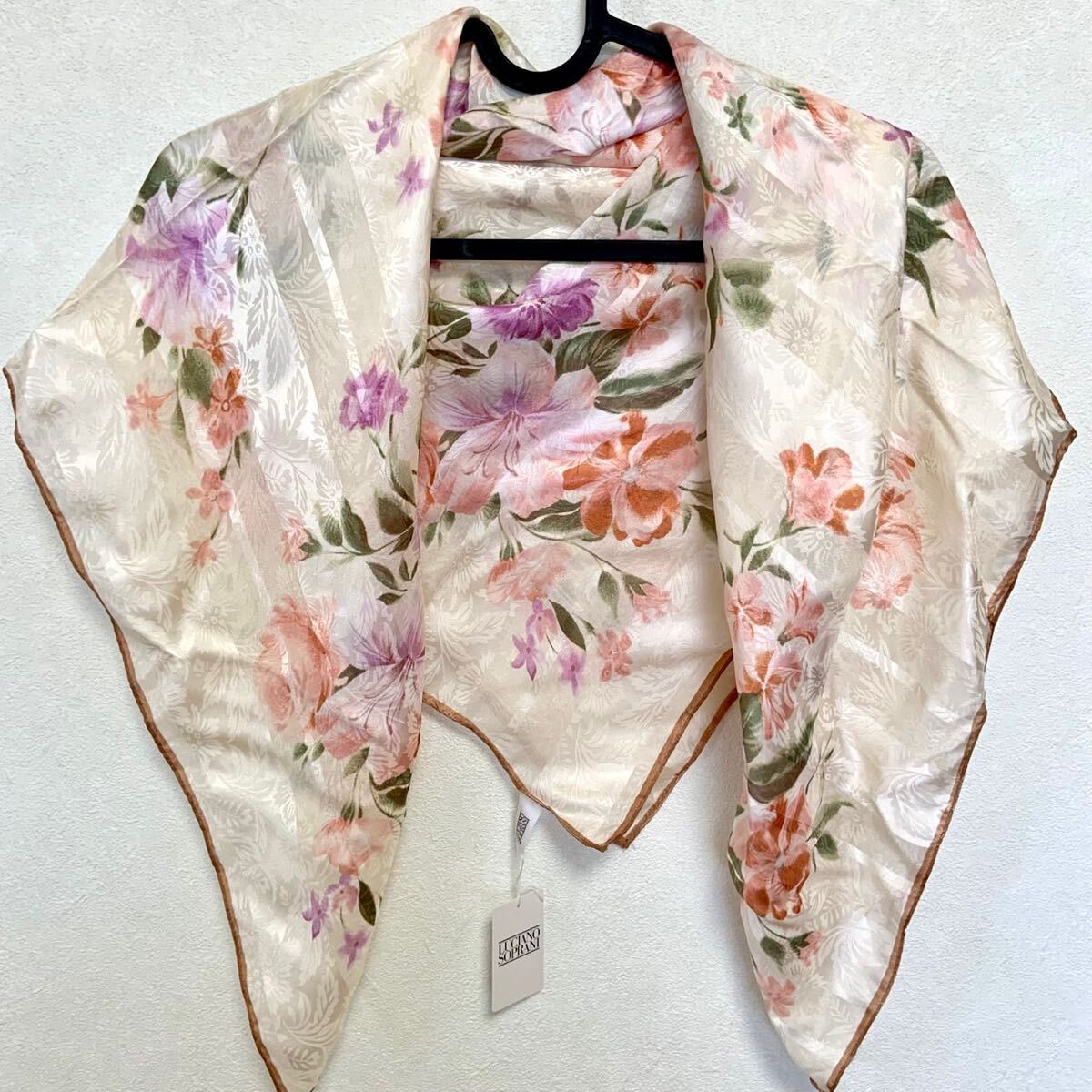 > 未使用 LUCIANO SOPRANI ルチアーノ ソプラーニ シルク100% 大判 スカーフ 約88×88cm 花柄 総柄 SILK 絹100% 日本製 オーロラ(株)
