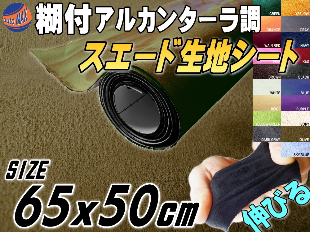 > スエード(小)オリーブ 幅65cm×50cm伸びるアルカンターラ調スウェード生地シート裏面糊付きカッティング可 シート内装ステッカー車 4