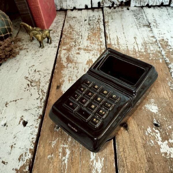 > 70-80s ジャパン ヴィンテージ 非売品 SHARP シャープ 陶器 電卓 小物入れ 計算機 机上 収納 蓋物 レトロ ビンテージ アンティーク 古道具
