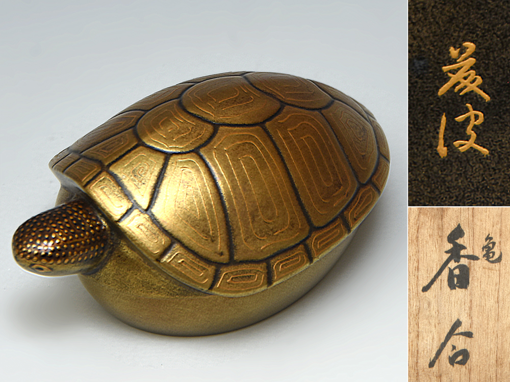- 輪島蒔絵師 鈴谷藤波(造)内銀溜 金蒔絵 亀香合 箱付 木工芸 漆工芸 漆芸 茶道具 美品 u0114o