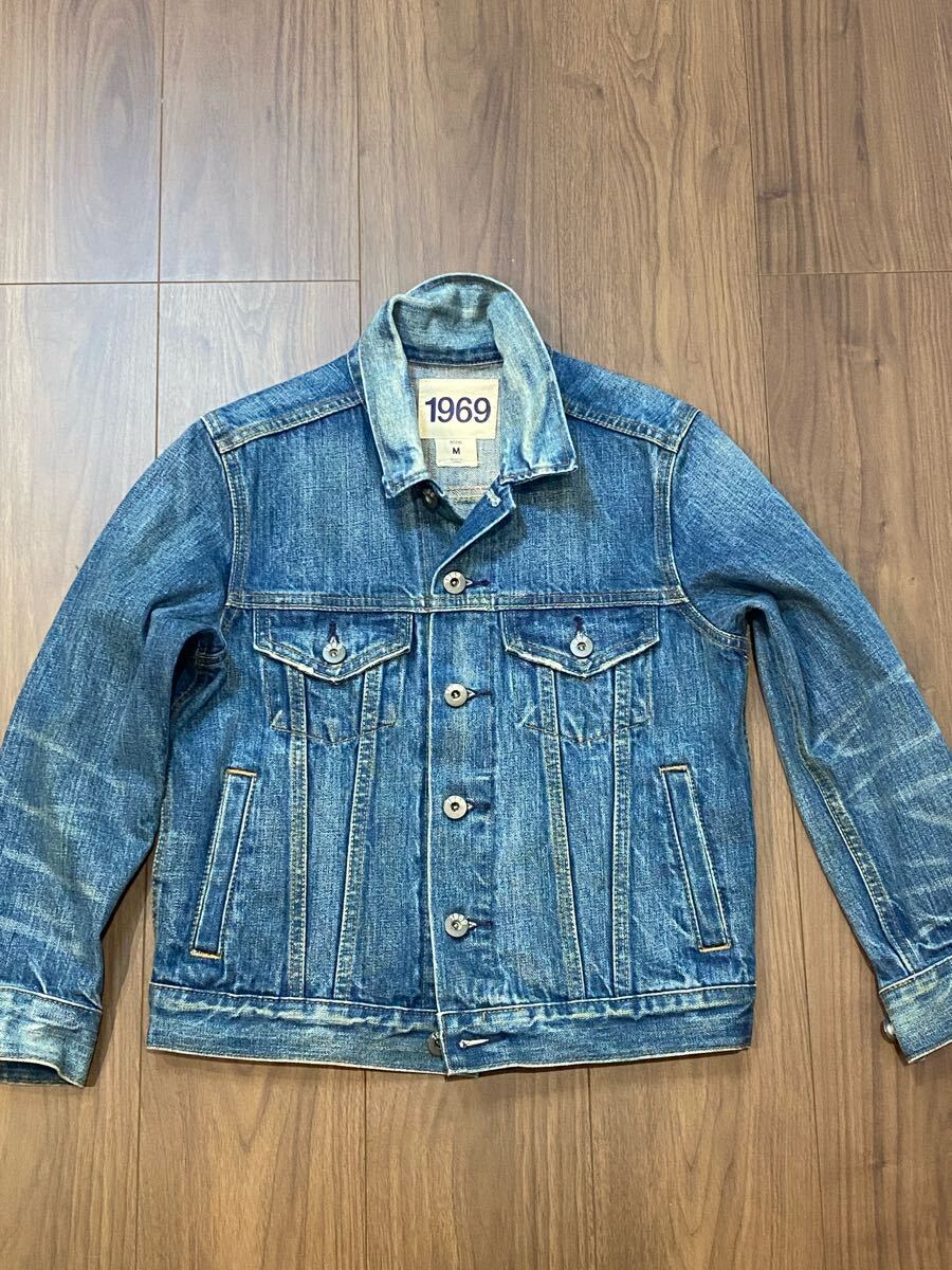> GAP ギャップ 1969 本格派デニムジャケット ダメージ加工 赤耳 セルビッヂ Mサイズ キッズ 子供 小学生 アウター ビンテージ
