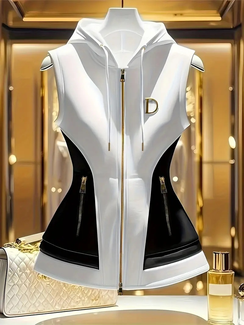 - メッチャ人気袖なしジップアップフード付ベストジャケットツートーン春秋ファッションお出かけにも凄くいいオススメキレイ目から可愛い系迄