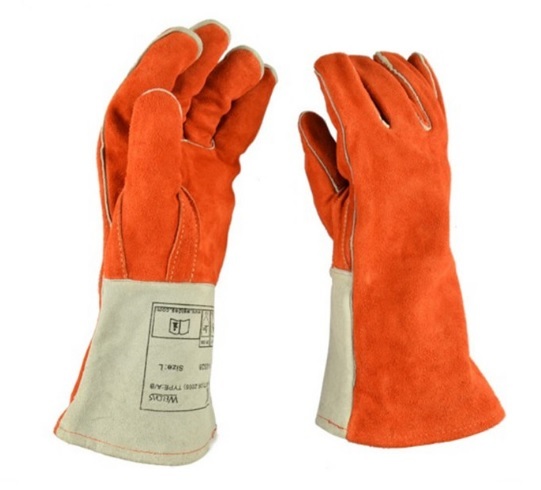 - セーフティ ロング グローブ 保護 手袋 キャンプ 溶接 34cm (オレンジ) 耐熱 耐磨耗 牛革 厚手