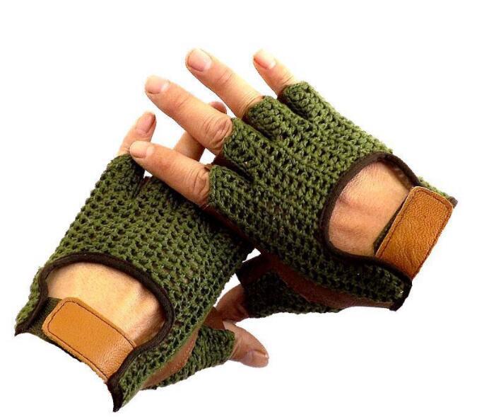 - 新入荷メンズ 本革 セミフィンガー グローブ ハーフフィンガー ニット 通気性 ドライビング レザー ワンサイズ 手袋