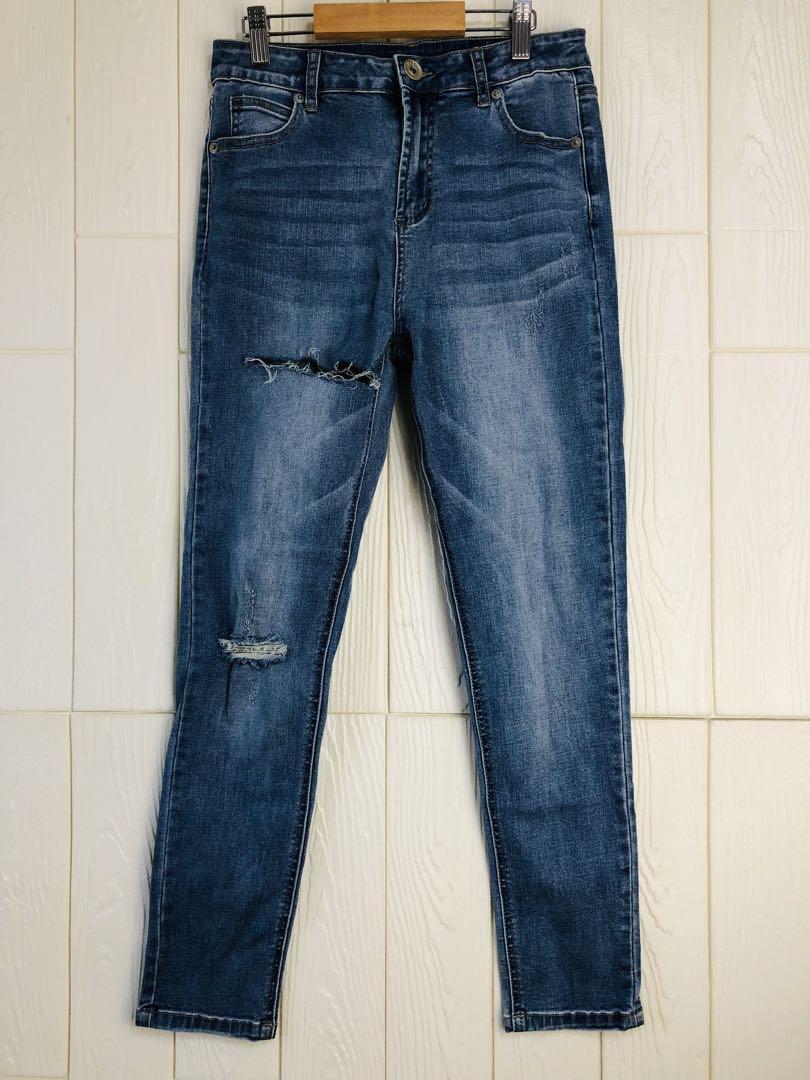 - ダメージ加工 ダークブルー スキニーデニム Lサイズ GRL