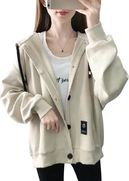 - パーカー レディース 長袖 おしゃれ 無地 カジュアル 2XL