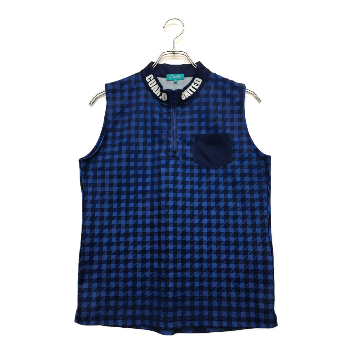 > coco 中古【値下げ】 クアルトユナイテッド CUARTO UNITED ノースリーブシャツ L 紺 チェック レディース ネコパケ発送可 93588