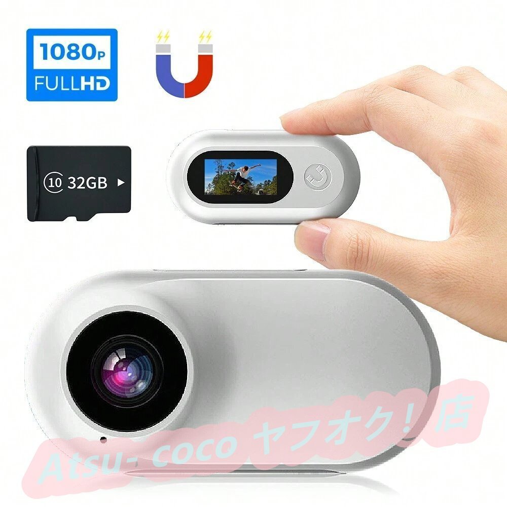 > アクションカメラ 小型カメラ 1080P 32GB SDカード付 バイク用 自転車 車載 スポーツカメラ 180°回転レンズ 家庭用 夜視可