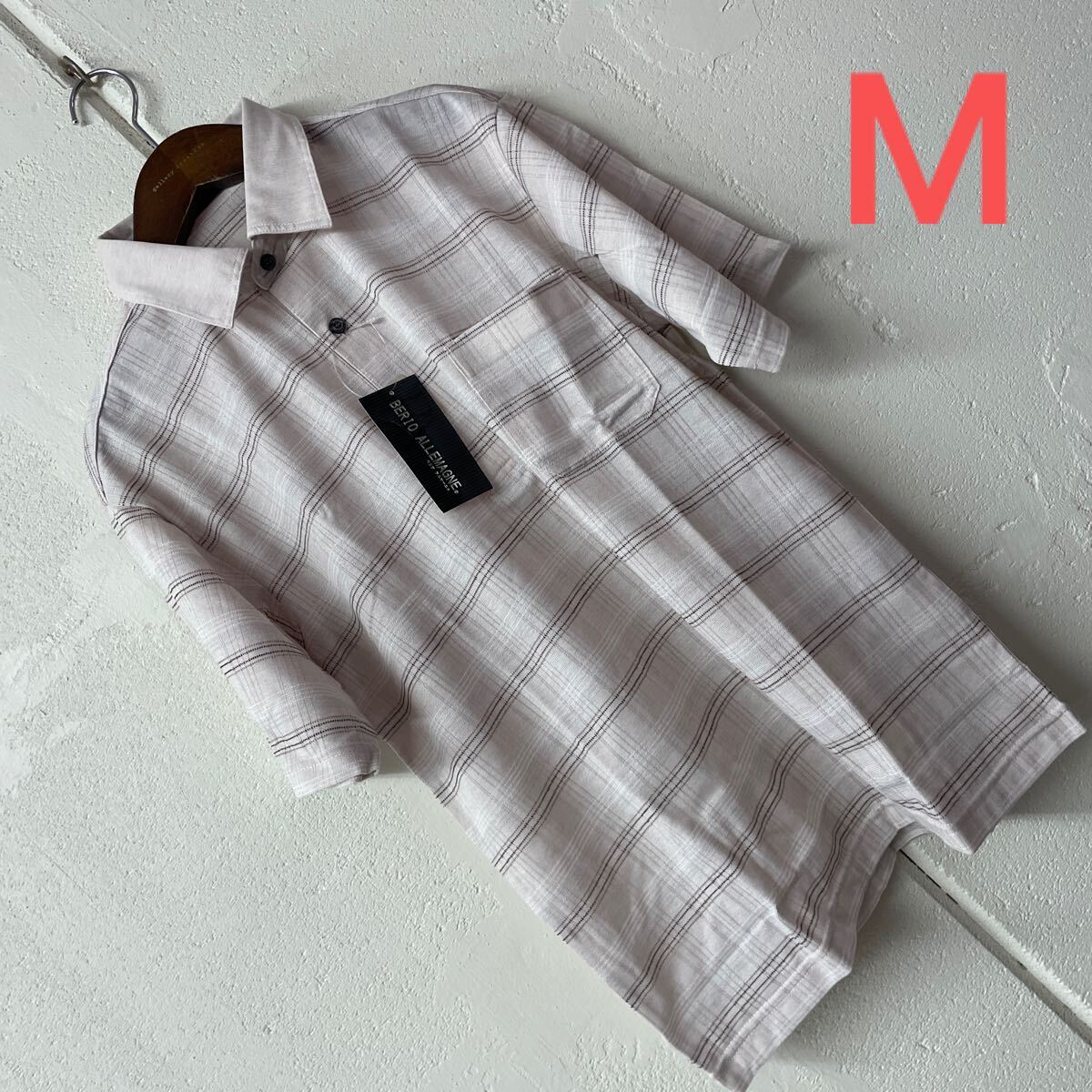 - Mサイズメンズ麻混胸ポケット半袖ポロシャツ ベージュ