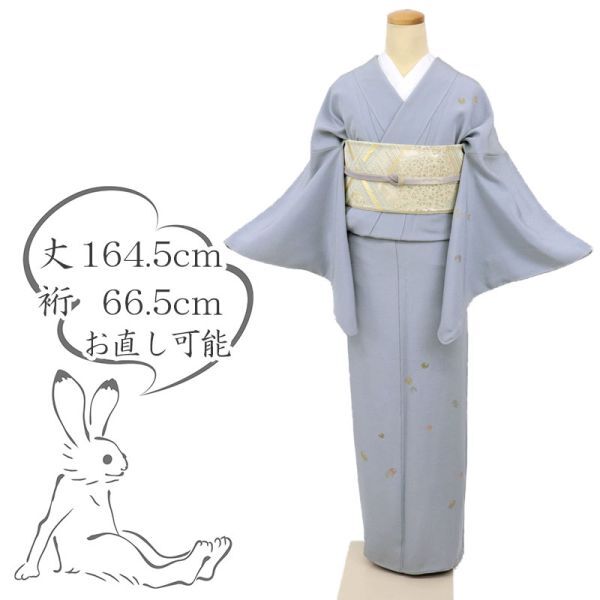 - 【付下げ】 長尺 刺繍 半月模様 寿光織り 灰青 袷正絹着物 レディース SA3-6