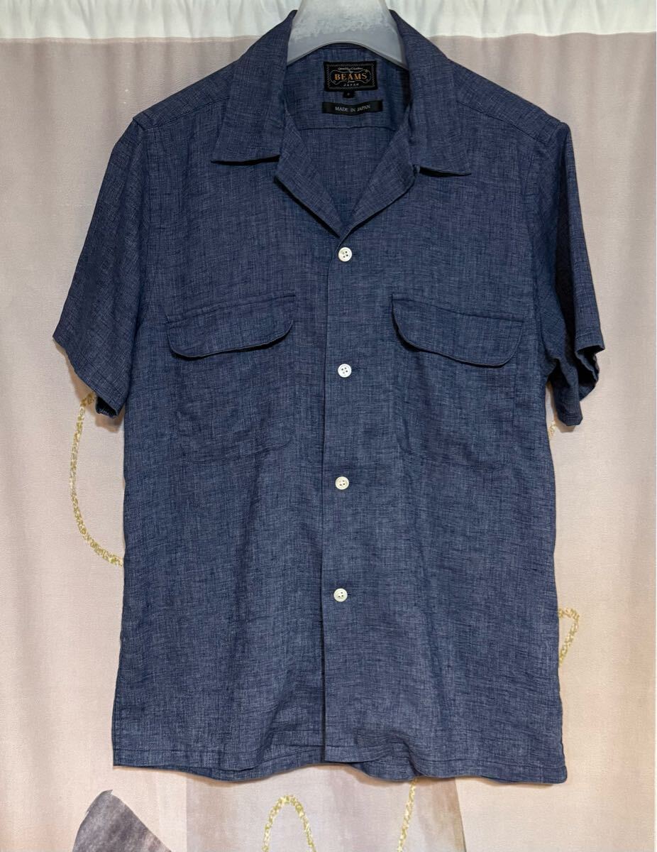 - ビームスプラス ダブルポケット リネン 半袖 オープンカラーシャツ 日本製