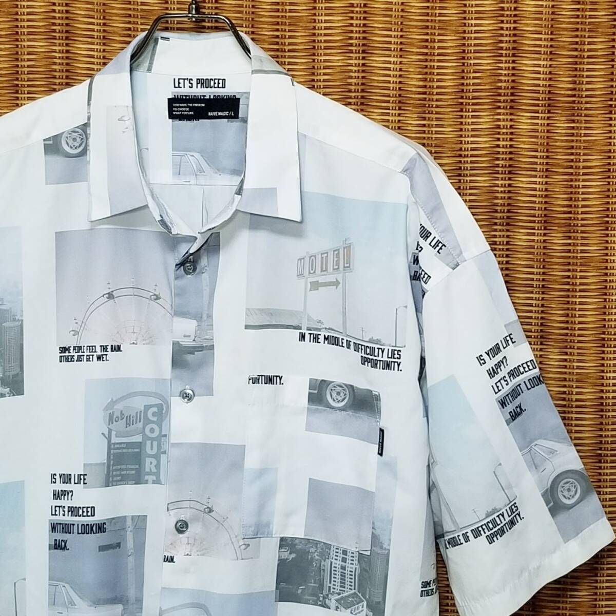 > 【美品】◎ Naive magic ナイーブマジック/ 半袖 プリントフォト シャツ 胸ポケット SIZE: L マルチ