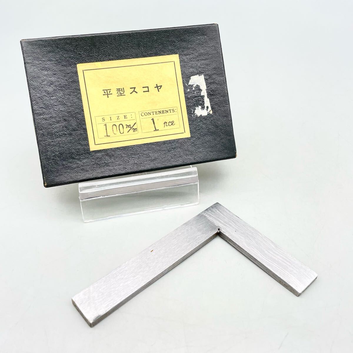 > [新品 未使用品] 平型 スコヤ 100×69mm L字型 定規 角度計 90° 大工 道具 工具 測定器 毛がき 線引き 物差し 測量 短手 金物屋 在庫品