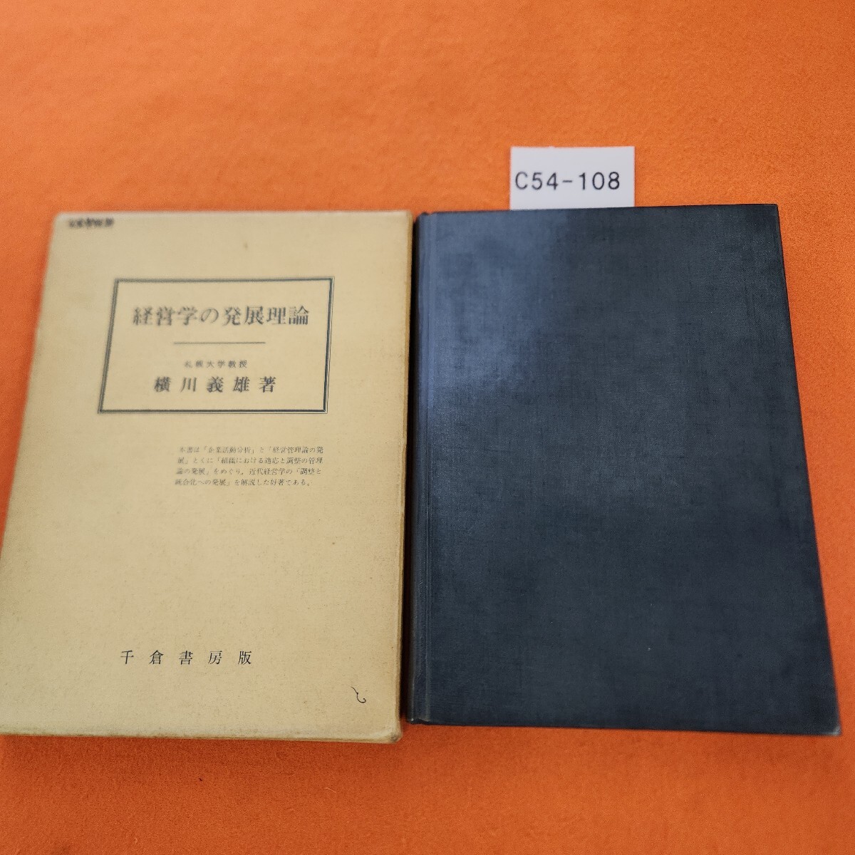 - C54-108 経営学の発展理論 横川義雄著 千倉書房 記名塗りつぶし 書き込み 水シミ蔵書印あり。外箱 記名塗りつぶし 書き込み 汚れ劣化あり。