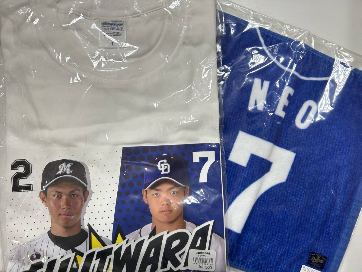 > 【7766】千葉ロッテマリーンズ Tシャツ 藤原 選手 根尾 選手 顔 プリント ハンドタオル