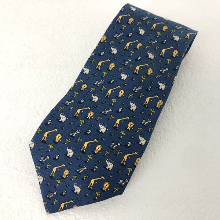 > Salvatore Ferragamo サルヴァトーレ フェラガモ イタリア製 アニマル柄 総柄 ネクタイ ネイビー MU632025051514