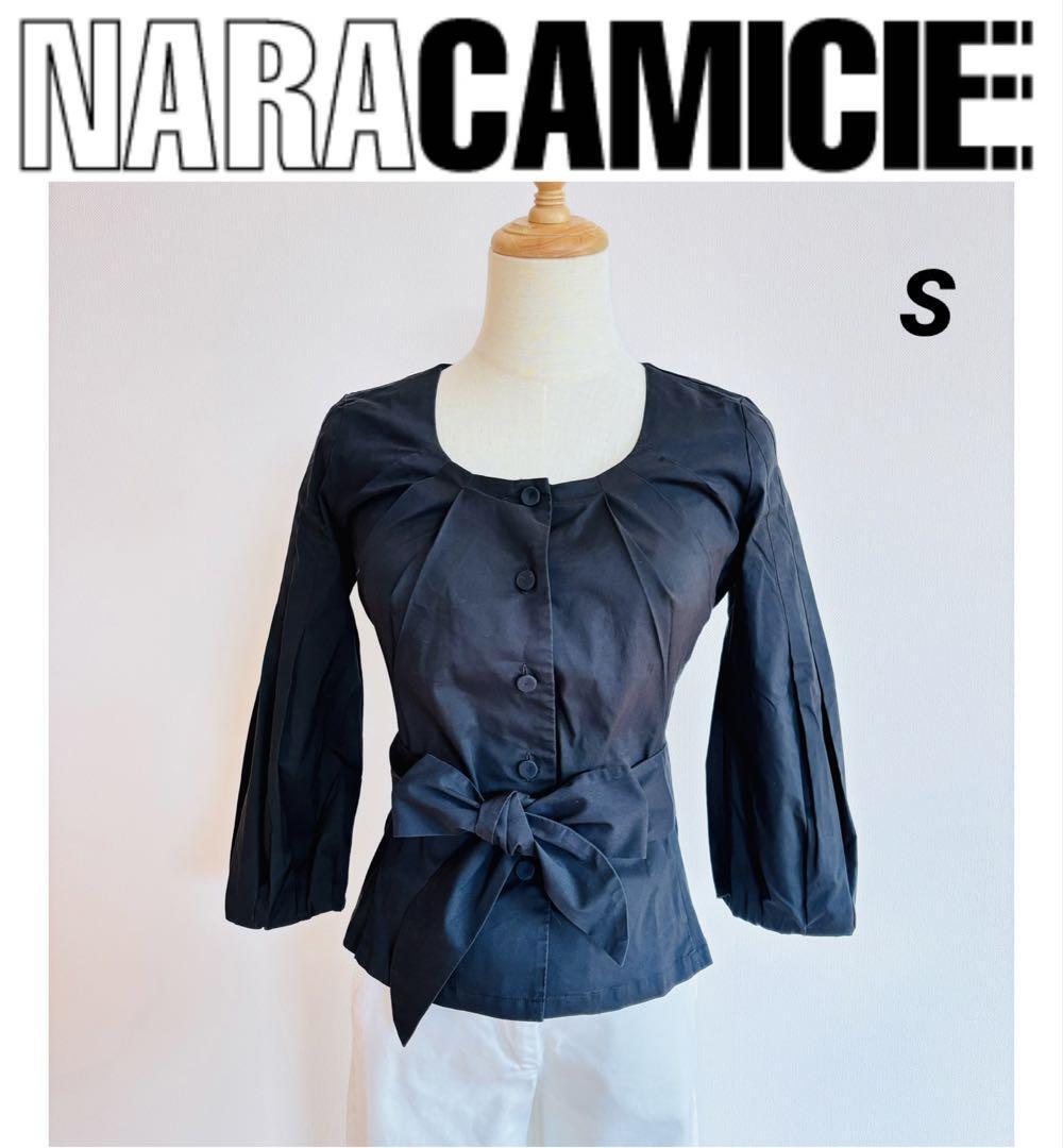 - NARACAMICIE ナラカミーチェ 日本製 リボン付き タック 七分袖シャツ ジャケット 黒 S