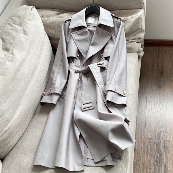 - 新品高級品レディー定番コートトレンチコートジャケットグレーL